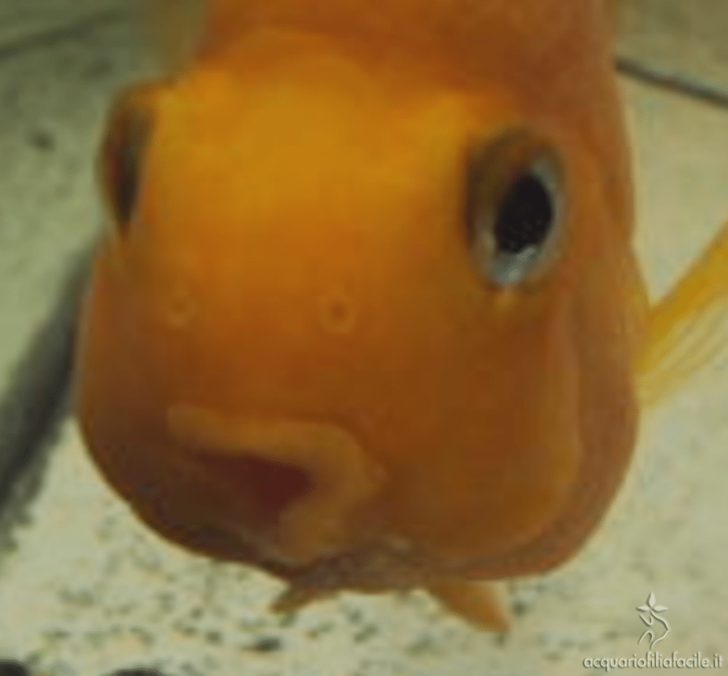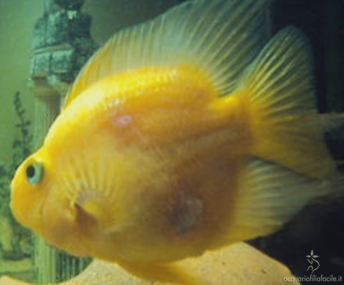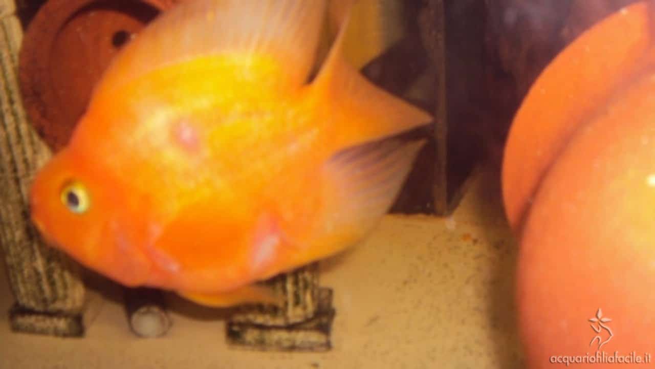 Si tratta di una malattia contratta da una giovane Parrot fish yellow (ciclide pappagallo) di oltre 2 anni e sempre in perfetta forma.