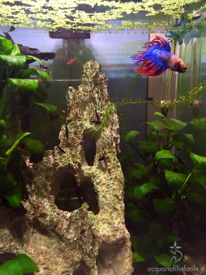 Come fauna c’è Fiocco, una decina di boraras brigittae e un numero indefinito di Caridina blu.