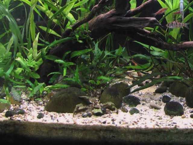 Poi, per ricreare l’ambiente, metteremo ciottoli e rocce, e per finire dei legni di Teak (o Jati) che daranno una colorazione leggermente ambrata, come in Natura.