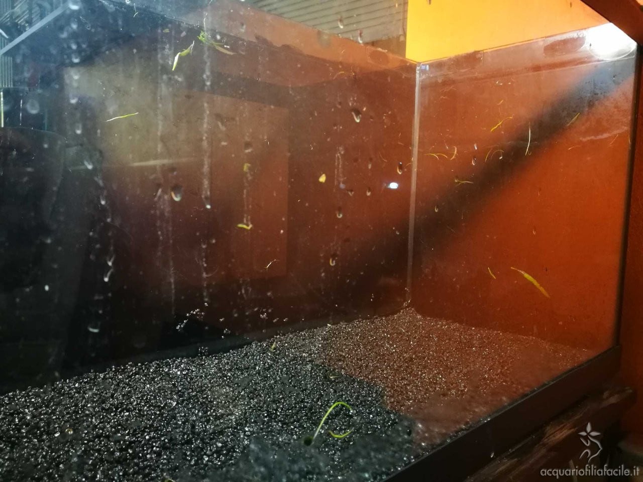 In uno di essi ho messo buona parte dell’acqua, le piante e tutti i pesci; negli altri, l’acqua restante in modo da poterla reinserire in acquario una volta terminate le operazioni.