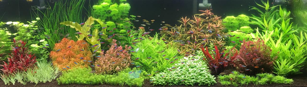 Un esempio: anche se sembra attraente e in salute, questo acquario ha troppe piante rosse. La strada di piante è allestita molto male. C’è una gigantesca macchia nera al centro, nella parte superiore, che potrebbe essere riempita con una parete di muschio. Molte piante sono troppo vicine tra loro e hanno un disperato bisogno di una sistemazione.