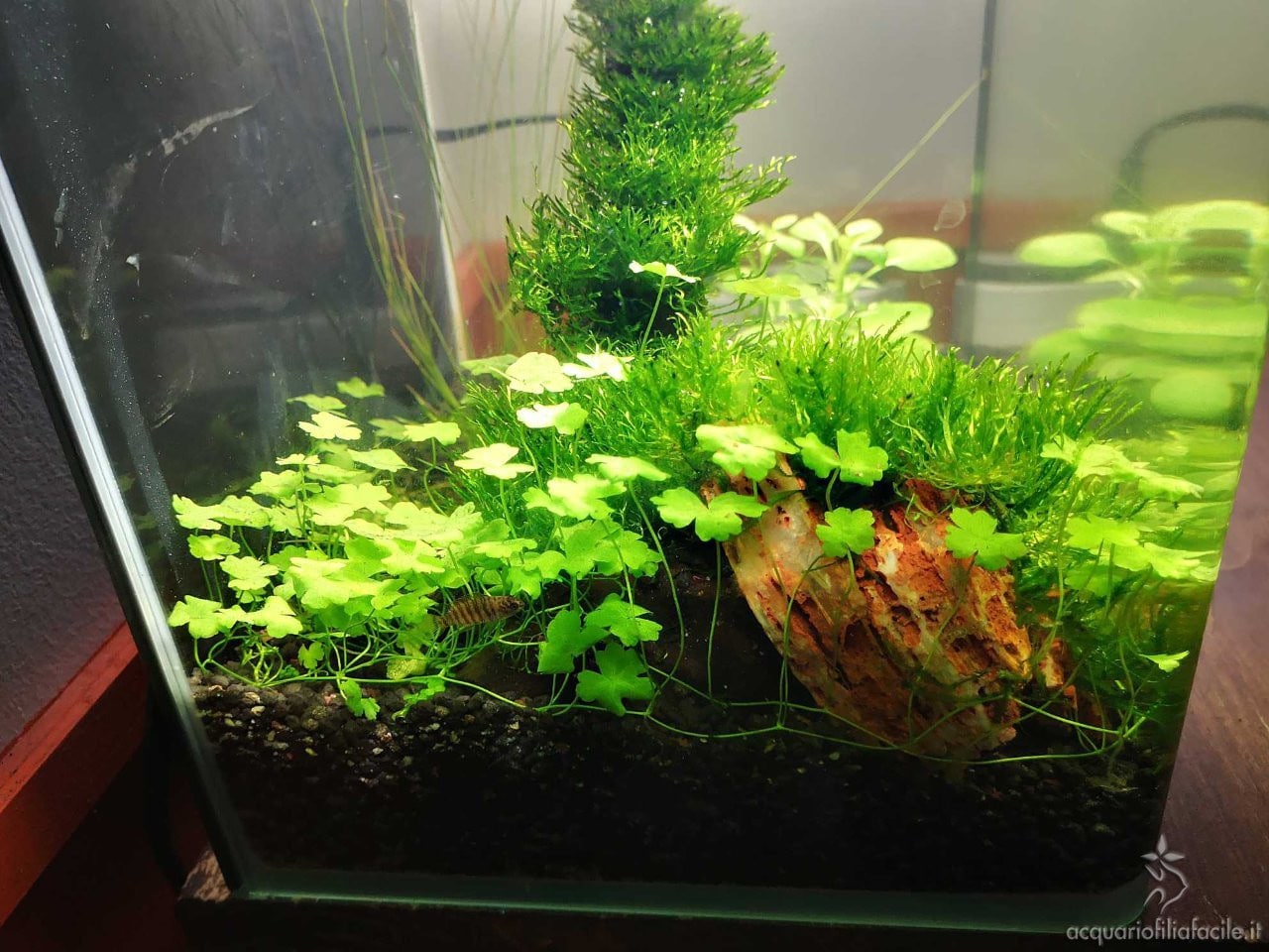 La nostra Monica ha provato la tecnica descritta in questo articolo per far crescere diverse piante e muschi (Christmas Moss, Riccia fluitans, Lobelia cardinalis mini, Hydrocotyle tripartita, Hemianthus callitrichoides) con una dose di di fertilizzante minore, ottenendo ottimi risultati come potete vedere voi stessi.