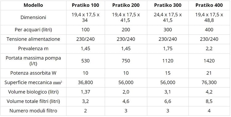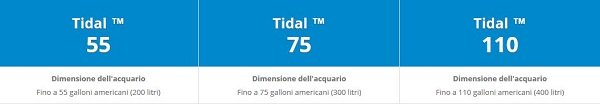 In queste schede troviamo delle diciture del tipo «adatto per acquari da 20 a 60 litri» oppure «adatto per acquari fino a 300 litri».