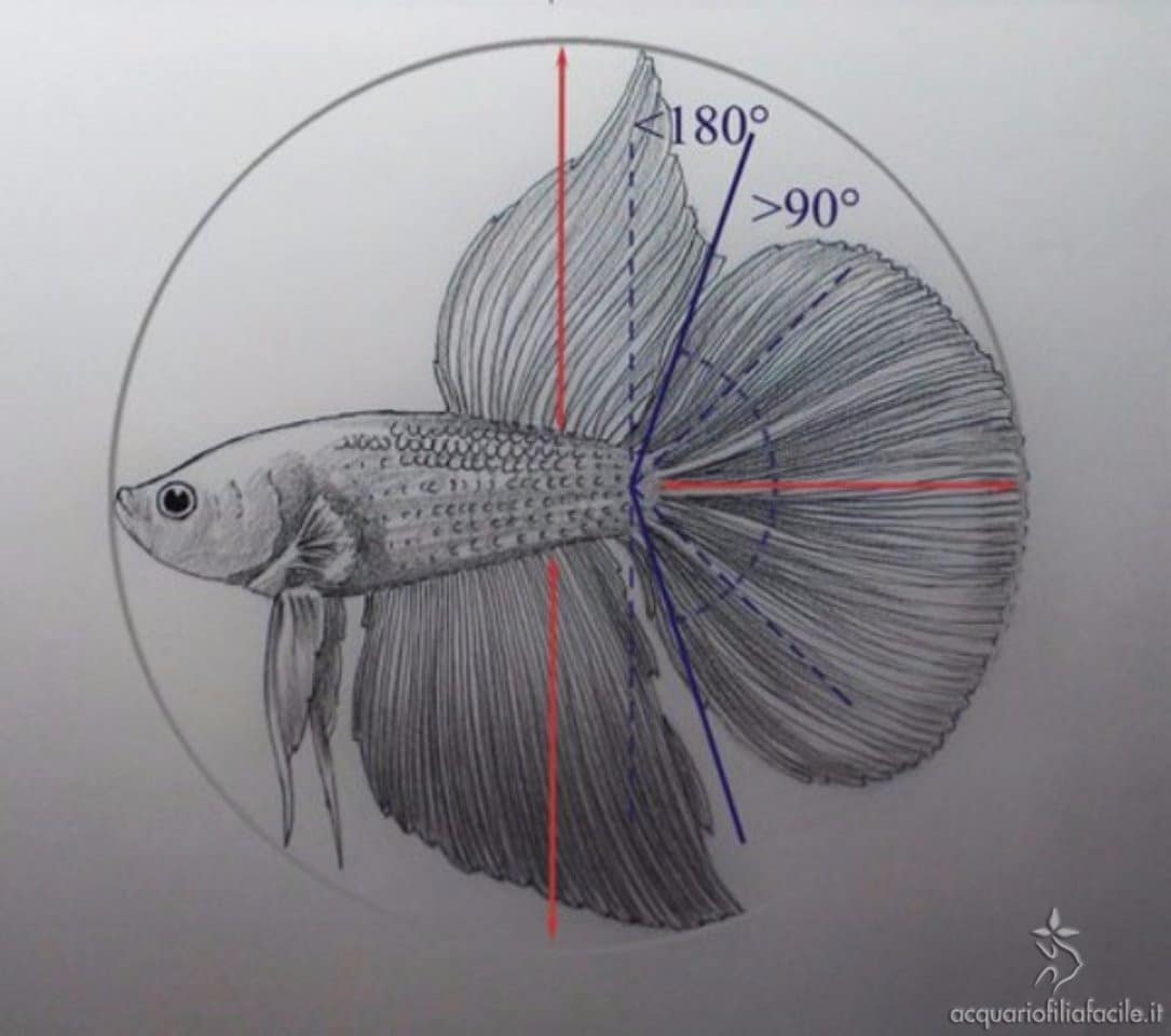 La differenza sostanziale sta nella caudale, che presenta un’ampia base con i raggi che si aprono similmente a quelli degli esemplari VT per poi incurvarsi verso il centro man mano che la coda si restringe.