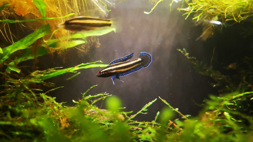 Partendo dall’acquario, data la loro mole davvero ridotta (difficilmente superano i 4 centimetri di lunghezza) possiamo senz’altro considerarli pesci adatti a vasche di piccole dimensioni (25-30L), mantenendo un’adeguata lunghezza frontale di almeno 40 cm, per 1-2 coppie o una piccola colonia. La dimensione della vasca va comunque adeguata al numero di esemplari contenuti. Essendo pesci abbastanza timidi vasche troppo grandi potrebbero rendere difficile l’alimentazione.