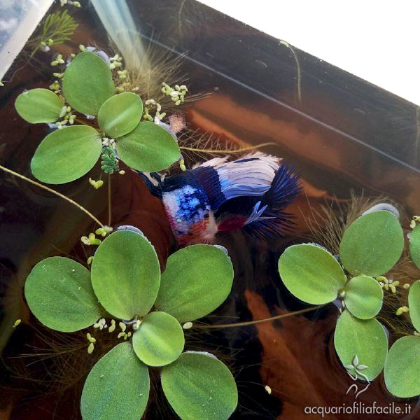 Ormai la vasca è quasi allestita, manca solo un supporto al futuro nido di bolle: c’è chi usa pezzi di plastica, di polistirolo etc… Io ho sempre utilizzato la Pistia stratiotes, che ha foglie abbastanza grandi e concave perfette per ospitare il nido sotto di esse; inoltre, tra le sue lunghe e folte radici possono trovare riparo molti microorganismi, ottimi per gli avannotti.
