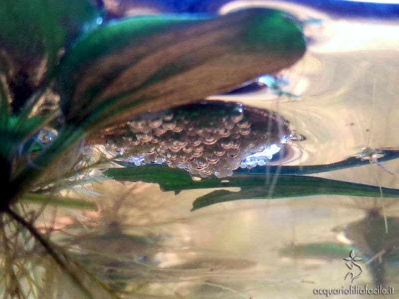 Qualcuno consiglia un aeratore per non far marcire le uova nel nido; personalmente non l’ho mai usato, e mi sono sempre trovato bene. Le proprietà delle foglie messe sul fondo saranno più che sufficienti a garantire le condizioni ideali per lo sviluppo delle uova, e poi a noi di Acquariofilia Facile «piace naturale»!