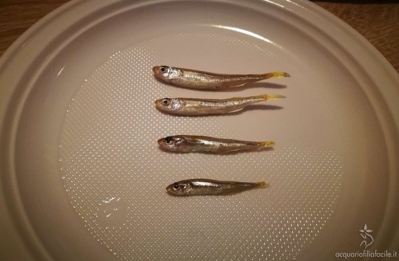 Gli alimenti ideali sono le Dafnie, le piccole Artemie saline e i Copepodi.