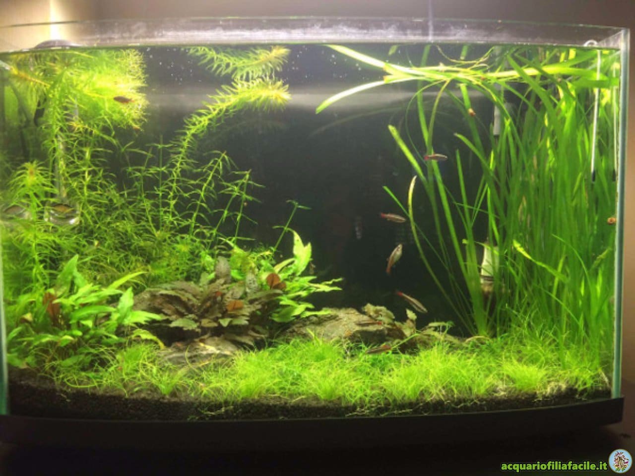 Allestiremo un acquario con un fondo scuro e abbondantemente piantumato.