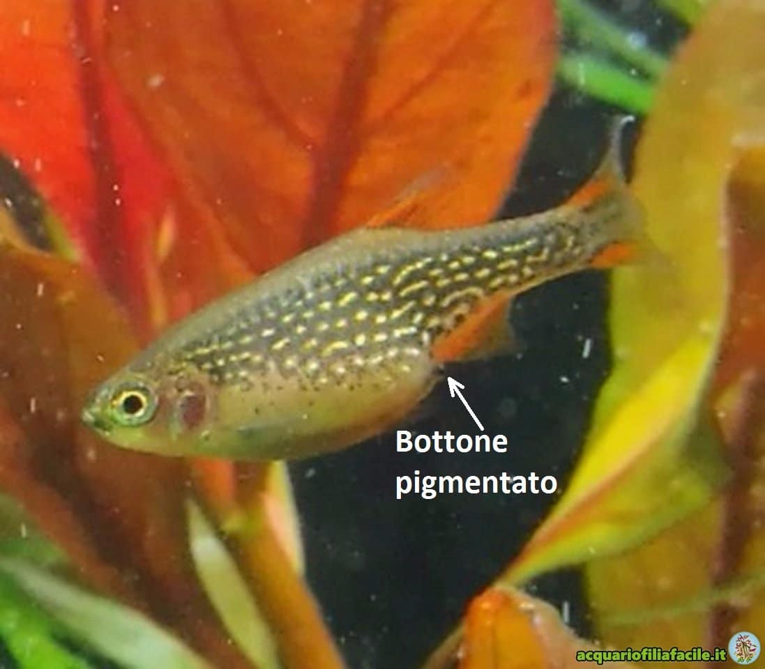 Quando sono pronte per la deposizione, le femmine mostrano un bottone pigmentato davanti alla pinna anale.