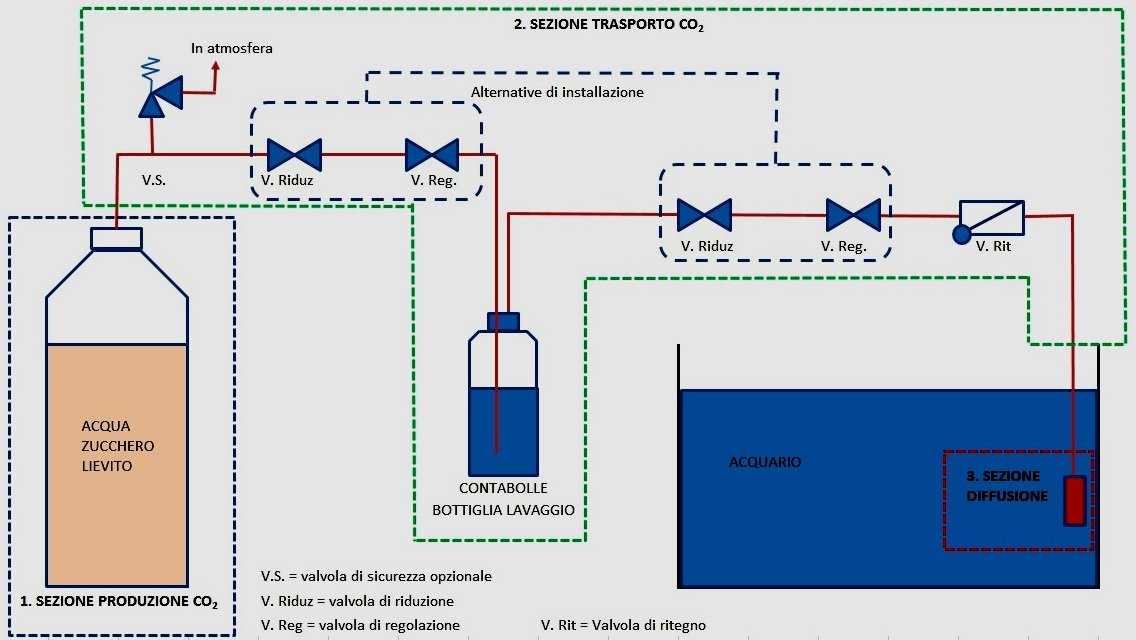 La CO2 prodotta nel generatore deve essere portata al nostro acquario previa riduzione della pressione, regolanndo la quantità da immettere in vasca. Altrimenti avremo un rapido svuotamento del nostro generatore, ma soprattutto il sovradosaggio di CO2, con conseguenze letali per la fauna dell’acquario.