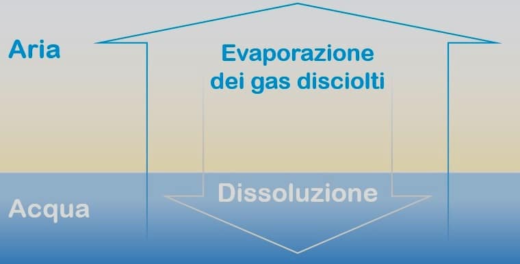 Ciò che invece si instaura è un equilibrio dinamico di dissoluzione (i gas si sciolgono in acqua) ed evaporazione (i gas abbandonano la soluzione acquosa e tornano allo stato gassoso nell’atmosfera).