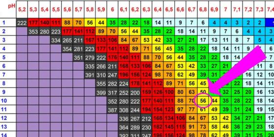 Il calcolo reale sarebbe piuttosto complesso, visto che il pH è un valore logaritmico; tuttavia, in acquario ci possiamo accontentare di una semplice sottrazione: 56 – 22, ovvero la differenza tra i due dati ottenuti.