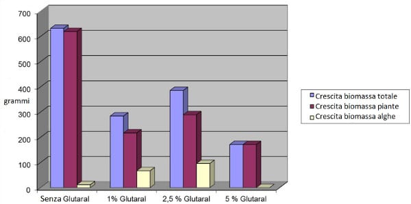 Come si può notare, a basse concentrazioni la glutaraldeide sembra favorire lo sviluppo delle alghe.