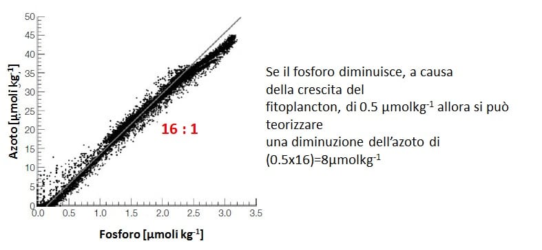 - I valori di N e P nell’acqua marina «tendono ad avvicinarsi» ai valori del fitoplancton, così diffuso in tale ambiente.