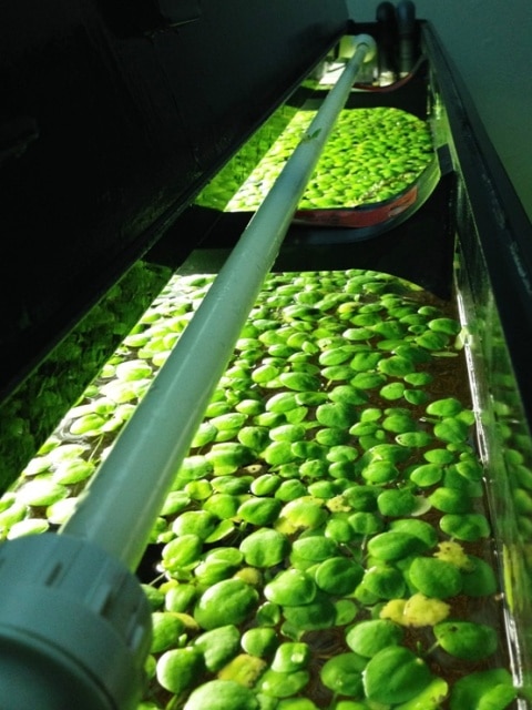 Per dargli adeguata tranquillità, dobbiamo coprire almeno una zona dell’acquario con piante galleggianti (le più usate); oppure rami affioranti, piante a stelo lungo… l’importante è che si riesca a coprire la superficie.