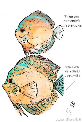 A differenza di molte altre specie di pesci, dove la colorazione più o meno accesa può indicare la differenza tra i sessi, nel caso dei Discus questa non è una caratteristica universalmente applicabile.