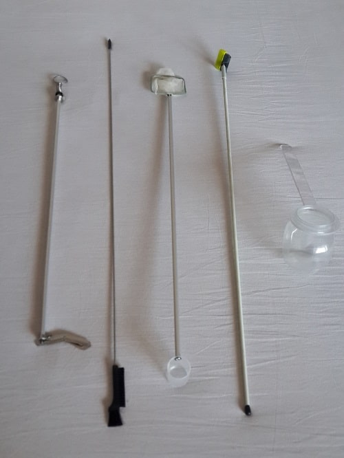 Quella che segue è la foto del sondino; non so se in commercio esista qualcosa di simile. Questo attrezzo permette di raggiungere con facilità tutti i punti della vasca: possiamo piantumare e pulire i punti più profondi e nascosti.