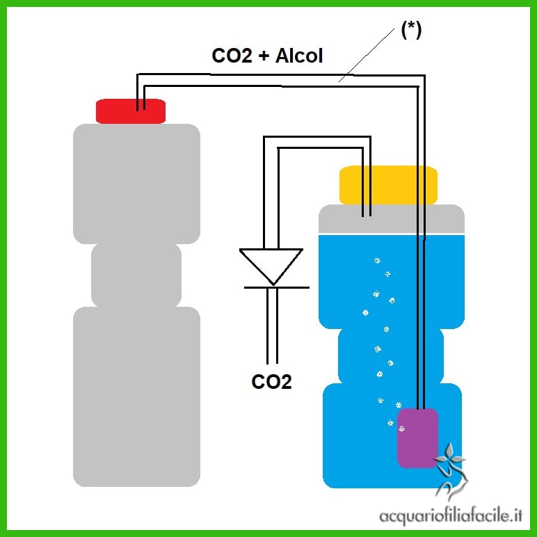 Sul simbolo (*), invece, potete mettere ciò che preferite per rendere più sofisticato il vostro impianto CO2: un manometro per vedere la pressione, un rubinetto per regolarne il flusso… persino uno di quei tappini delle camere d’aria delle bici, se dovesse succedere un incidente e aveste bisogno di far sfiatare l’impianto in modo controllato. O addirittura un sistema contabolle fatto con i dosatori delle flebo… (visto sempre qui sul Portale). Date libero sfogo all’immaginazione.