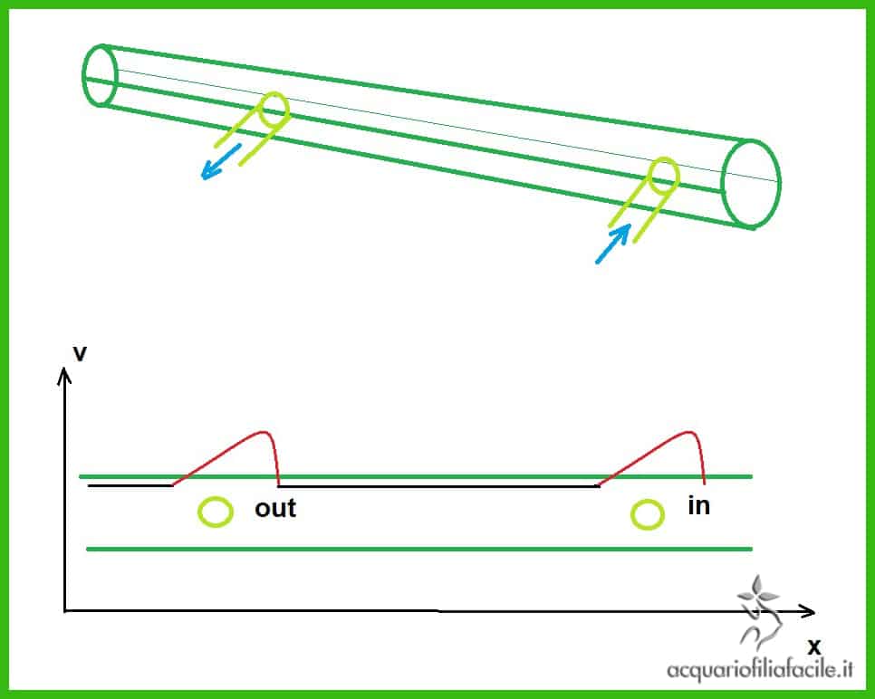 L’acqua arricchita di CO2 e qualche bolla (se fosse scappata) escono dalla nostra «centrifuga» e vengono reimmesse nel flusso principale di mandata. Di nuovo, si sfrutta l’effetto Venturi che, a causa di un restringimento di portata, frammenta le bolle che sono riuscite a fuggire, liberandole in vasca.
