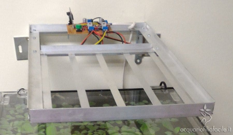 Con viti e bulloni ho fissato anche la centralina alla plafoniera e ho usato delle L per poter fissare la plafoniera al muro. Ecco il risultato.