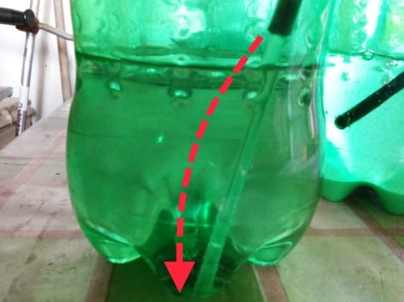 Per fare in modo che il nostro tubo rimanga perfettamente in posizione sul fondo della bottiglia, ci serviremo del tubicino che possiamo ricavare da una bottiglia di detergente spray:
