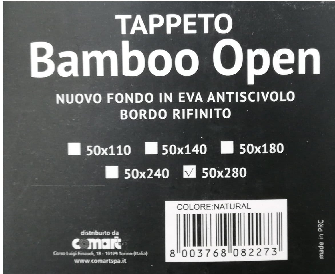 Dopodiché ho praticato dei fori da 5 mm di diametro, a distanza di 5 cm, su entrambe le estremità del tappeto di bamboo, che mi sono serviti per bloccare il rivestimento con un cordino.