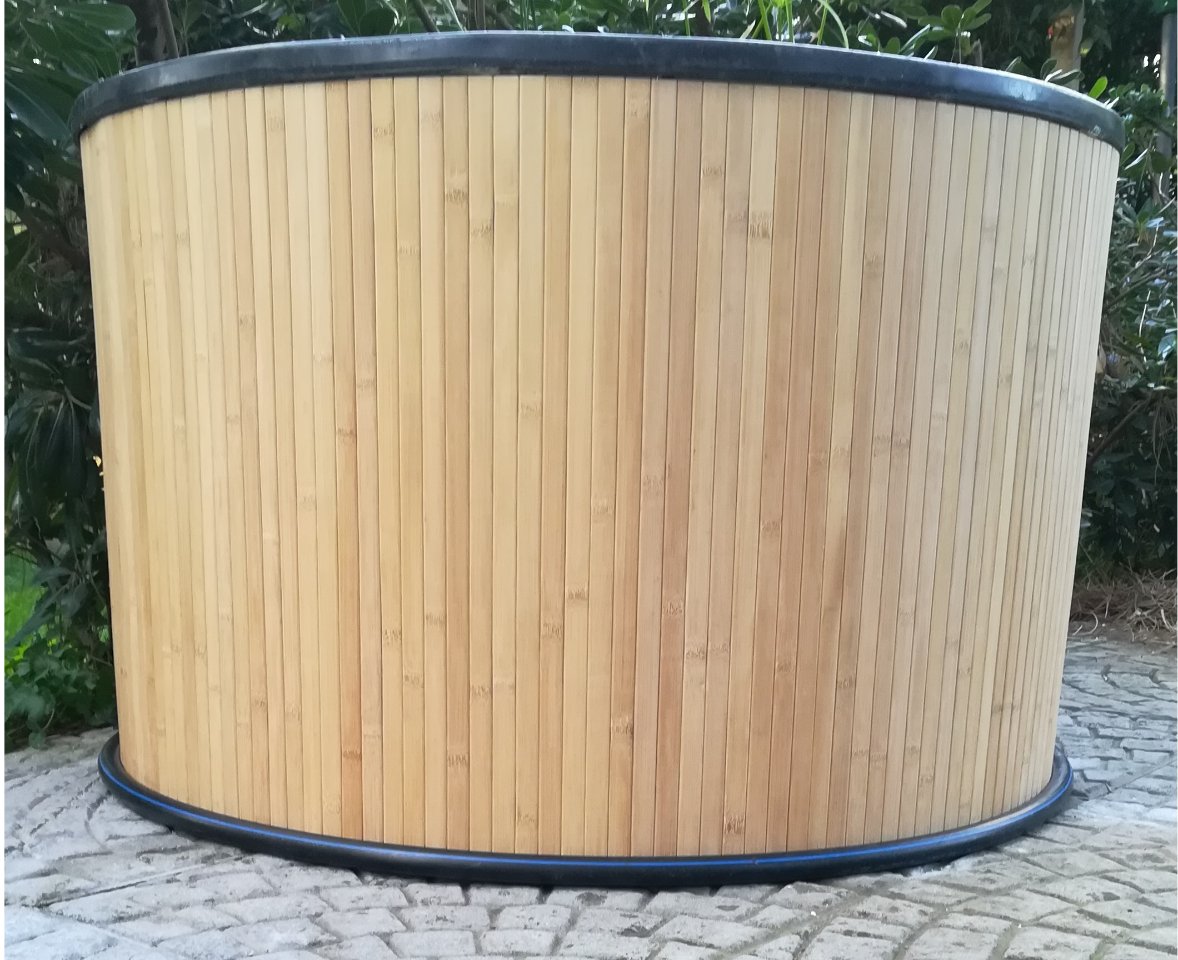 Per terra, attorno al mini pond, ho posato un cerchio di polistirene da 3 cm di spessore, per aumentare il diametro della base fino a raggiungere la stessa misura rilevata sotto il bordo della vasca (85 cm).