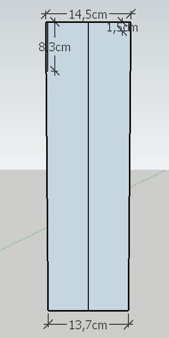 Con queste misure ho ricavato una dima di cartone. Ogni striscia avrà queste misure: