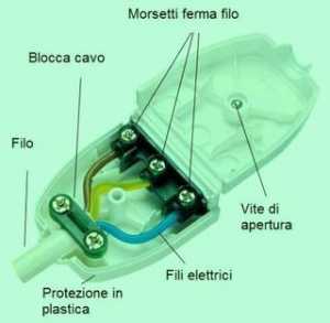 Collegheremo i fili (la polarità è, anche in questo caso, indifferente) e richiuderemo la spina con le plastiche.