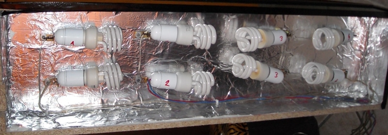 È giunto il momento di fissare i portalampada al coperchio. Io ne ho messi otto, per avere una potenza luminosa adeguata alle esigenze delle piante.