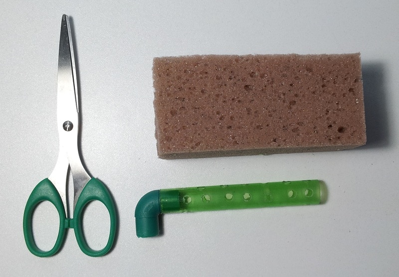 - Ripetiamo questa operazione due volte, in modo da ottenere due spugne di aspirazione e due gomiti inseriti nei tubicini.