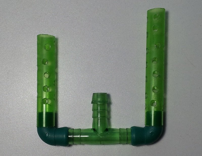 - Ora uniamo i due gomiti con i tubicini forati al giunto a T.