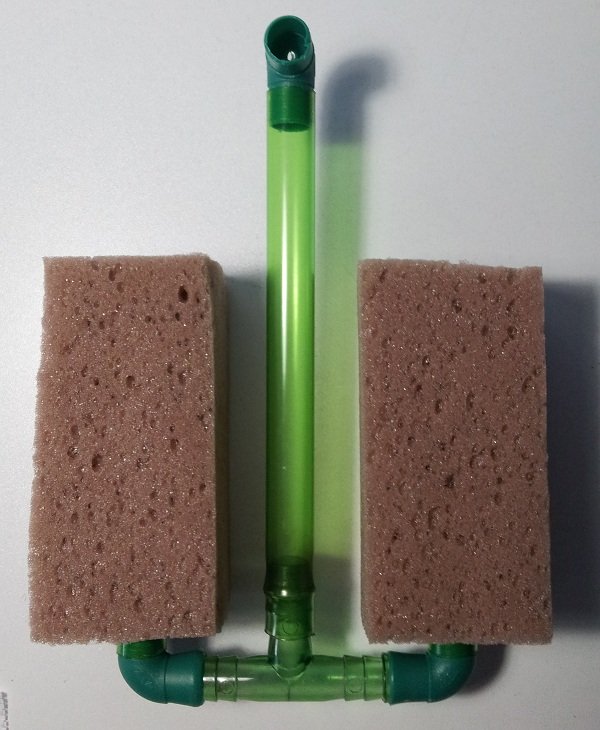 - Infiliamo quindi le due spugne preparate in precedenza e mettiamo il tutto in acquario.
