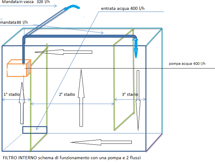 - 320 litri finiscono direttamente in acquario, dopo la filtrazione del 1° stadio;