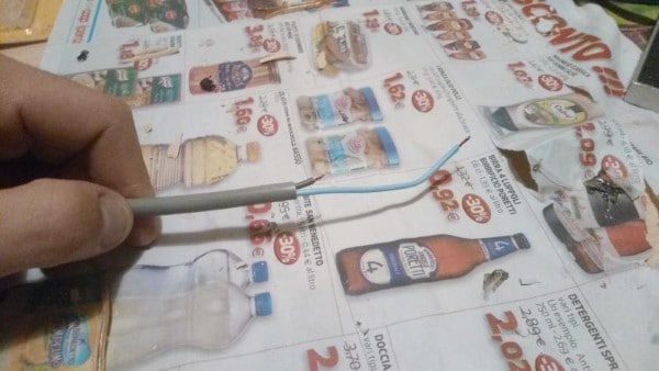 Ad un lato attaccheremo la spina volante; dall’altro lato scopriremo i fili (come da foto sottostante).