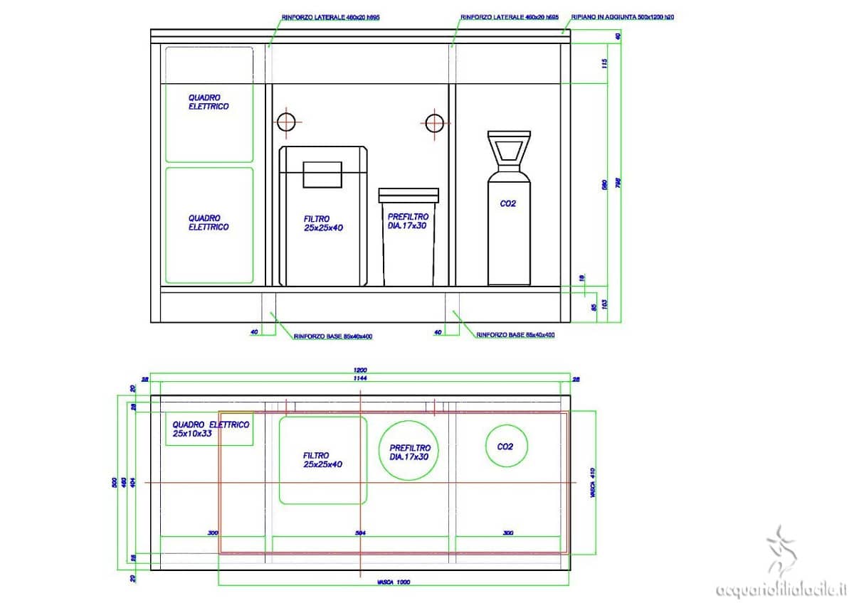 Il mio attuale acquario è più piccolo; ha un piano di 100×41 cm.