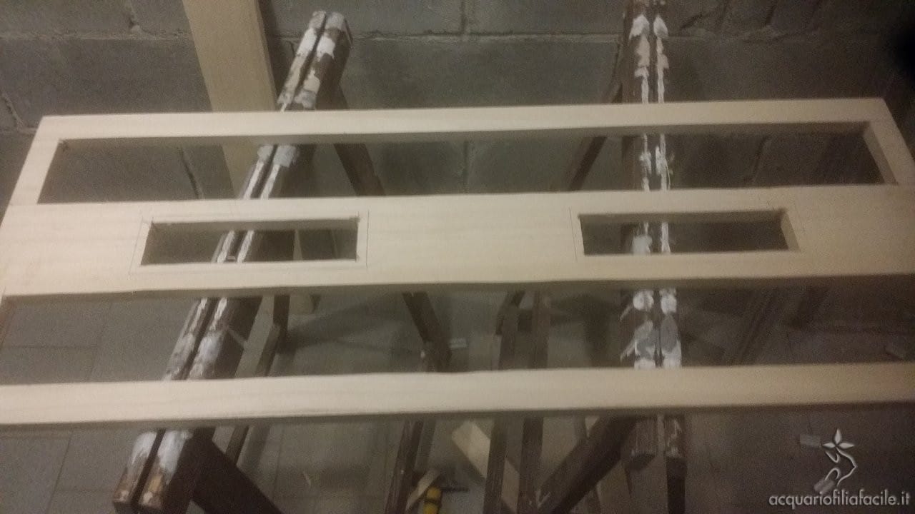 Poiché il mio acquario misura 120 x 40, ho rifilato di 10 cm la tavola con la sega circolare; ho così ottenuto una tavola di 100 x 40 che copre quasi per intero la superficie.