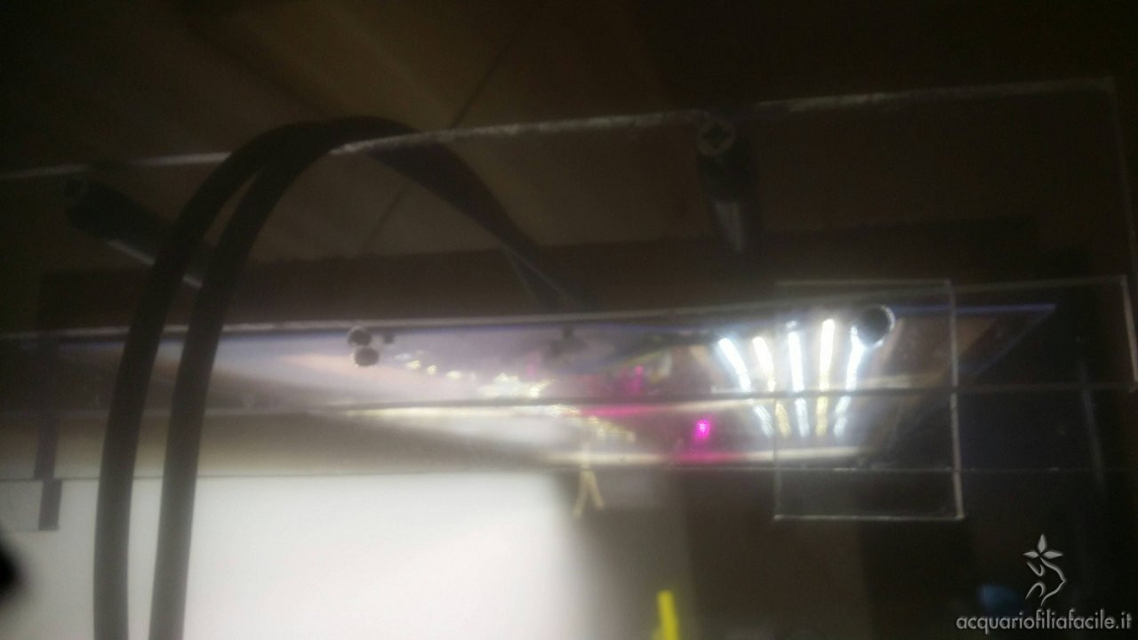 Ho fatto due fori sul fianco della plafoniera, ci ho infilato i due spezzoni e li ho collegati ai mammut che portano tensione alle strip LED.