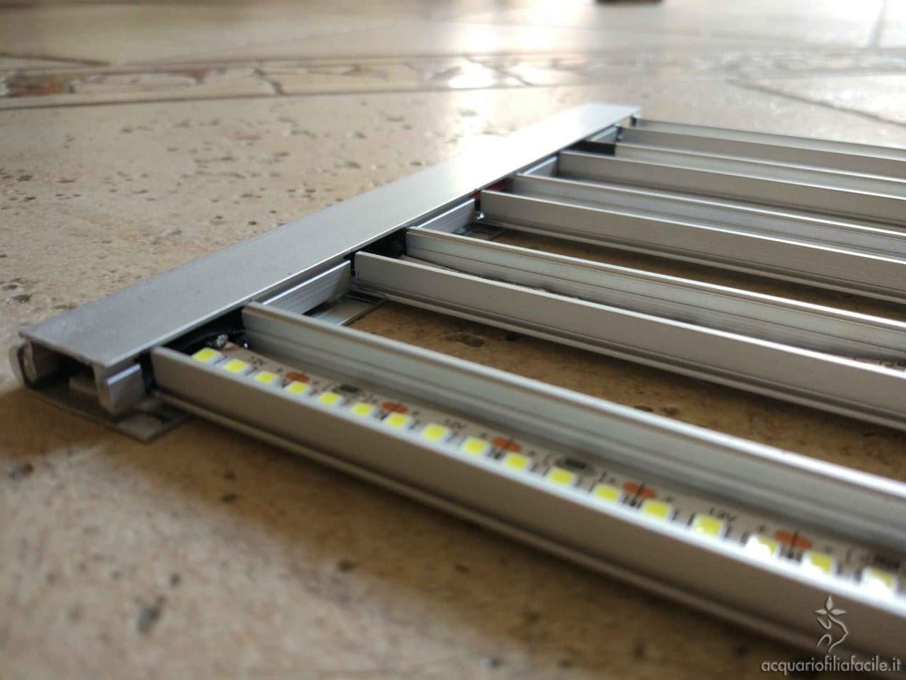 Nella canalina centrale ho inserito una striscia LED Grow da Idroponica con rapporto rossi:blu di 5:1.