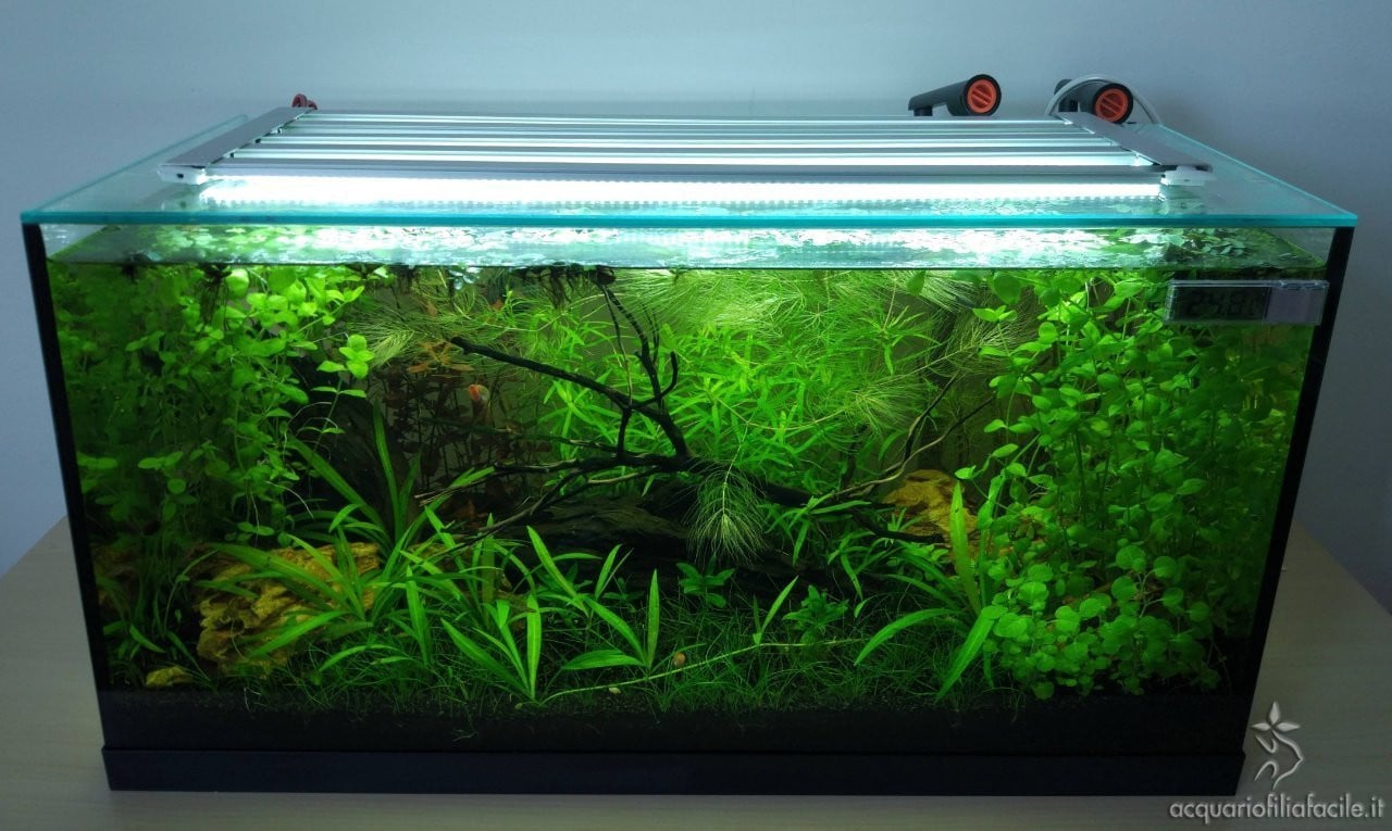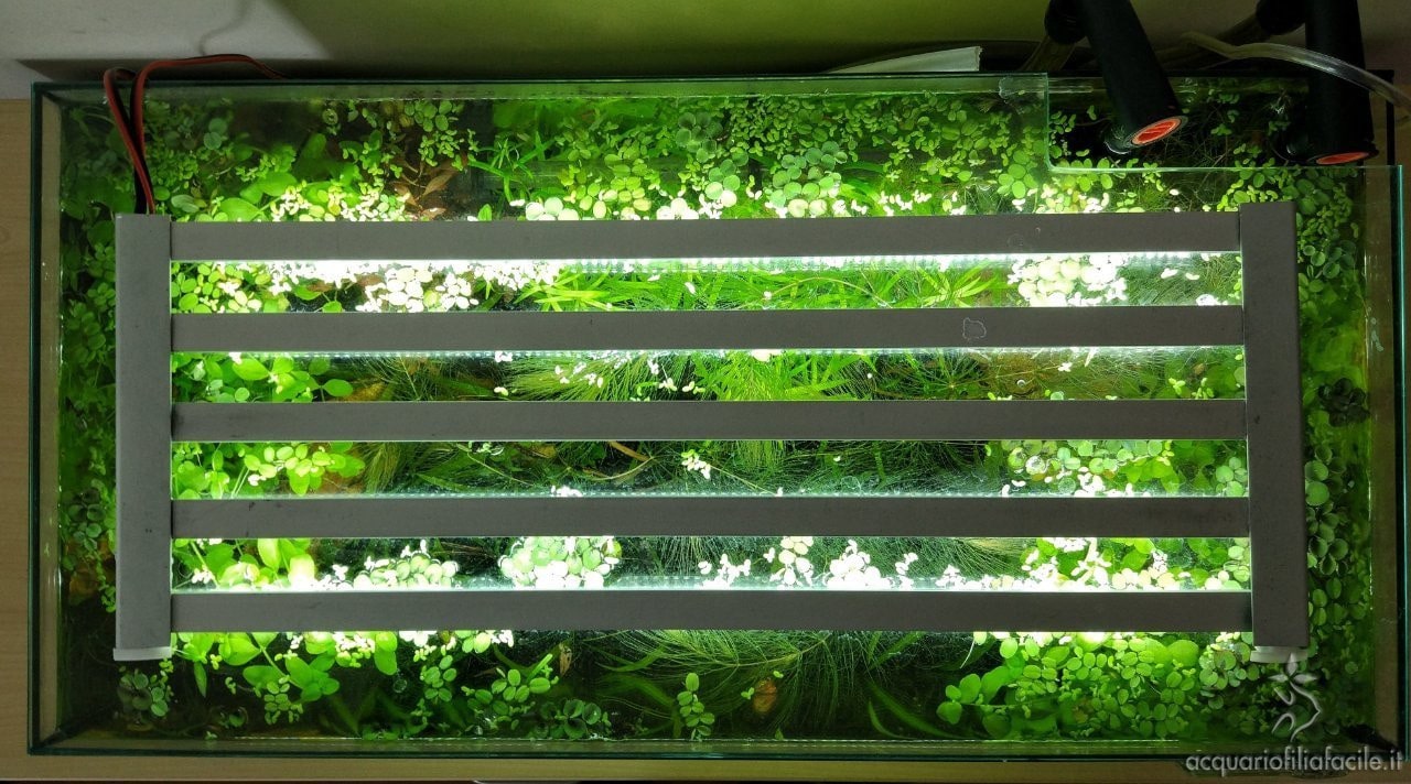 Questo è il risultato finale, la plafoniera LED montata sull’acquario: