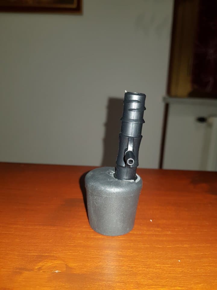 Foriamo – con un cutter – quello superiore in modo che il buco sia decentrato; in questo modo, il flusso d’acqua farà ruotare la bio-ball.