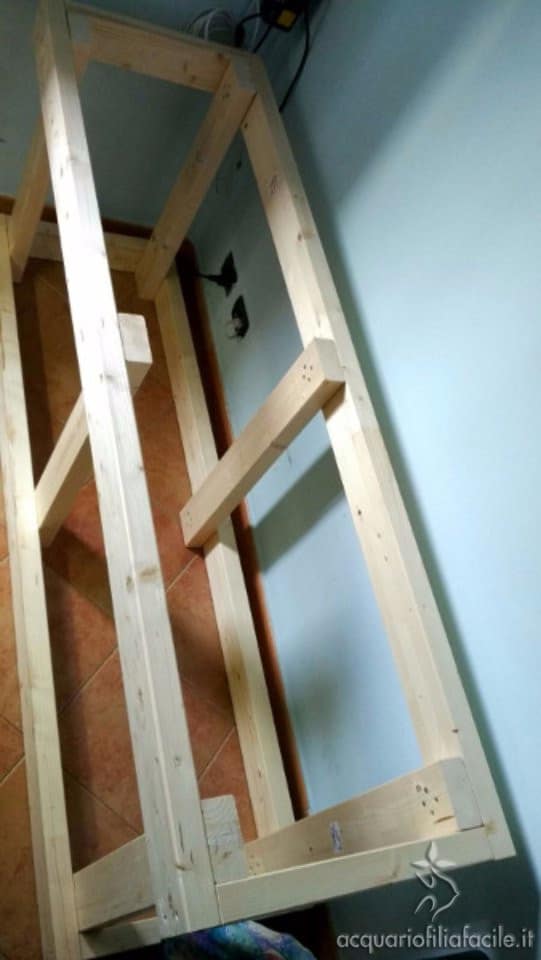 A questo punto lo stand vero e proprio è finito e potrà tranquillamente sostenere un acquario di 400/500 litri.