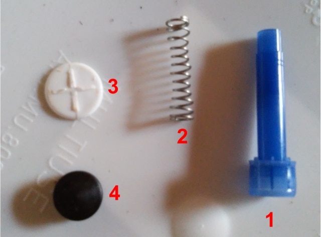 dal basso verso l’alto avremo la guarnizione, la molla ed il cilindretto.