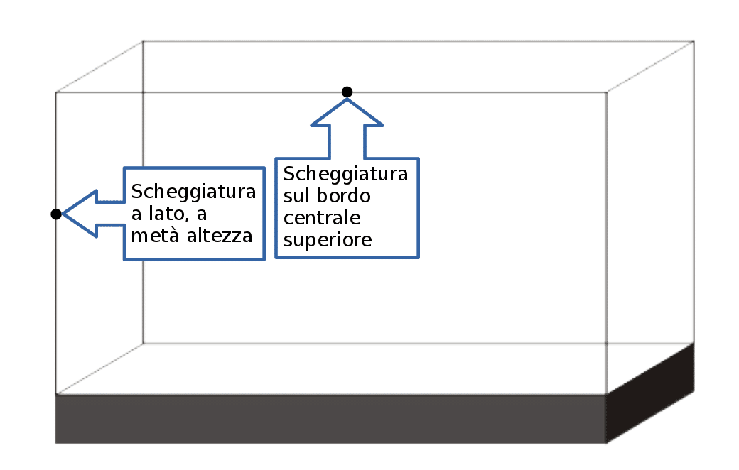 Vediamone quindi un esempio con una scheggiatura dello stesso tipo in un mio acquario vecchio e malandato: