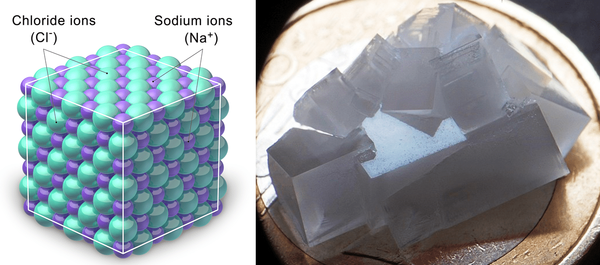 In parole povere per far capire che cosa sia una struttura cristallina basta citare esempio accademico come quello del cristallo di sale da cucina (NaCl), il quale presenta una composizione molecolare “di base” che si ripete fino a che non finisce fisicamente il cristallo di sale.