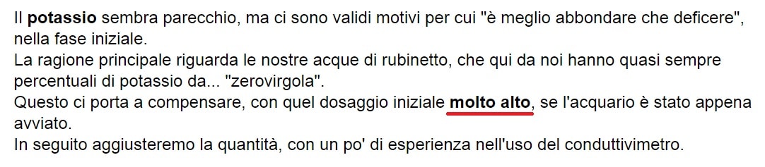 - Il dosaggio iniziale di potassio dell’articolo originale è molto alto, e contribuisce ad alzare anche la conducibilità.