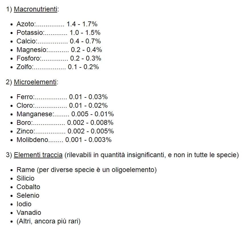 Se noi prendessimo le piante del nostro acquario e togliessimo loro tutta l’acqua, otterremmo una polvere; facendo analizzare questa polvere scopriremmo che essa è composta per il 96-97% da soli tre elementi: