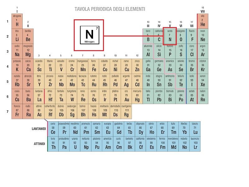 È l’elemento numero 7 della Tavola Periodica e ha un peso atomico di circa 14 u.m.a. (unità di massa atomica).