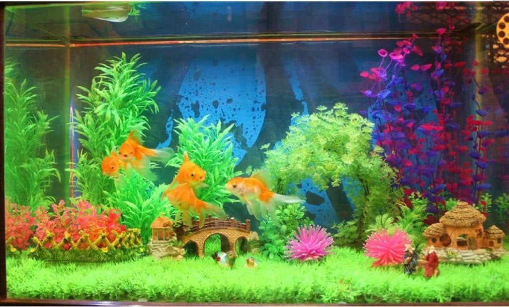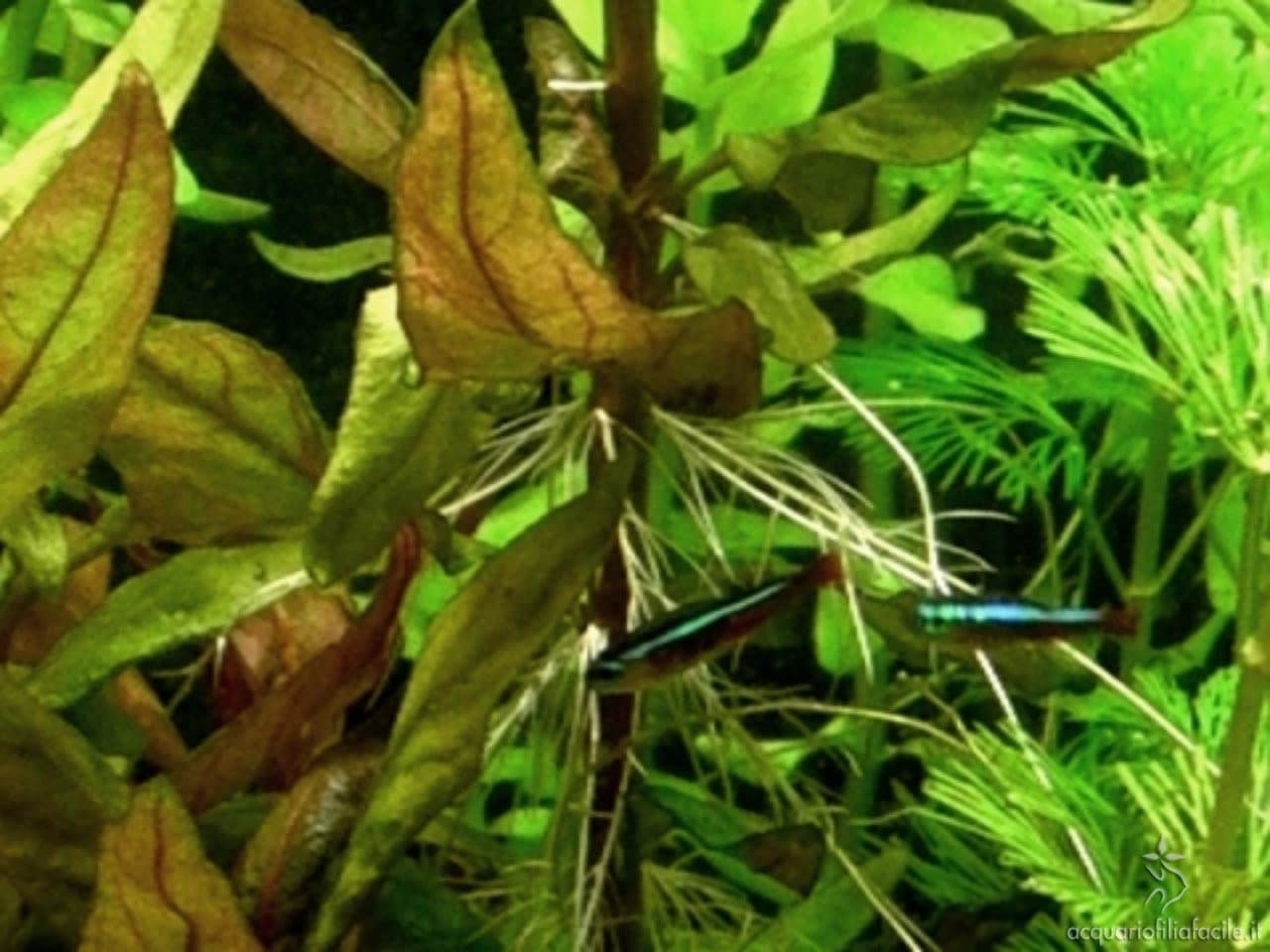 Acquario con piante (e non solo quelle) di plastica ed elevato carico organico